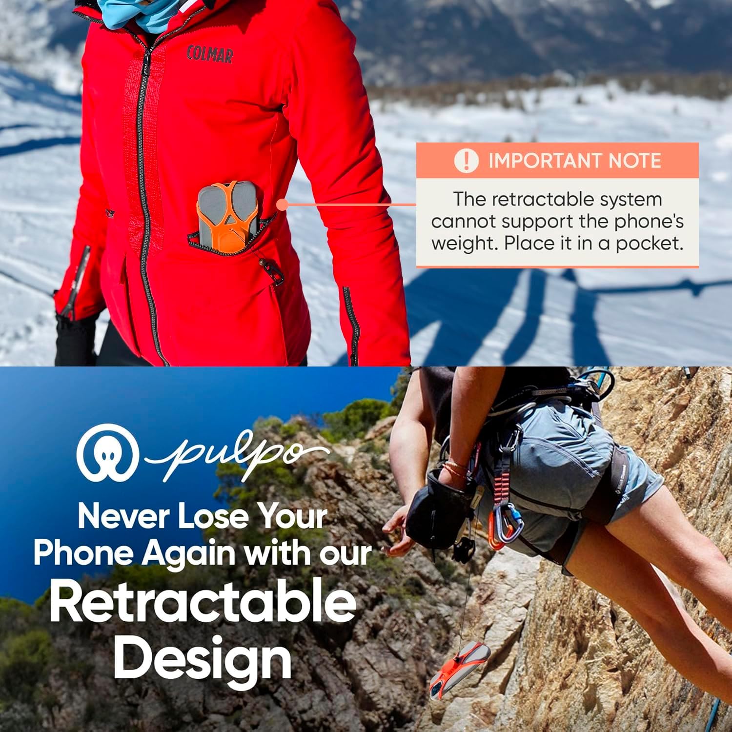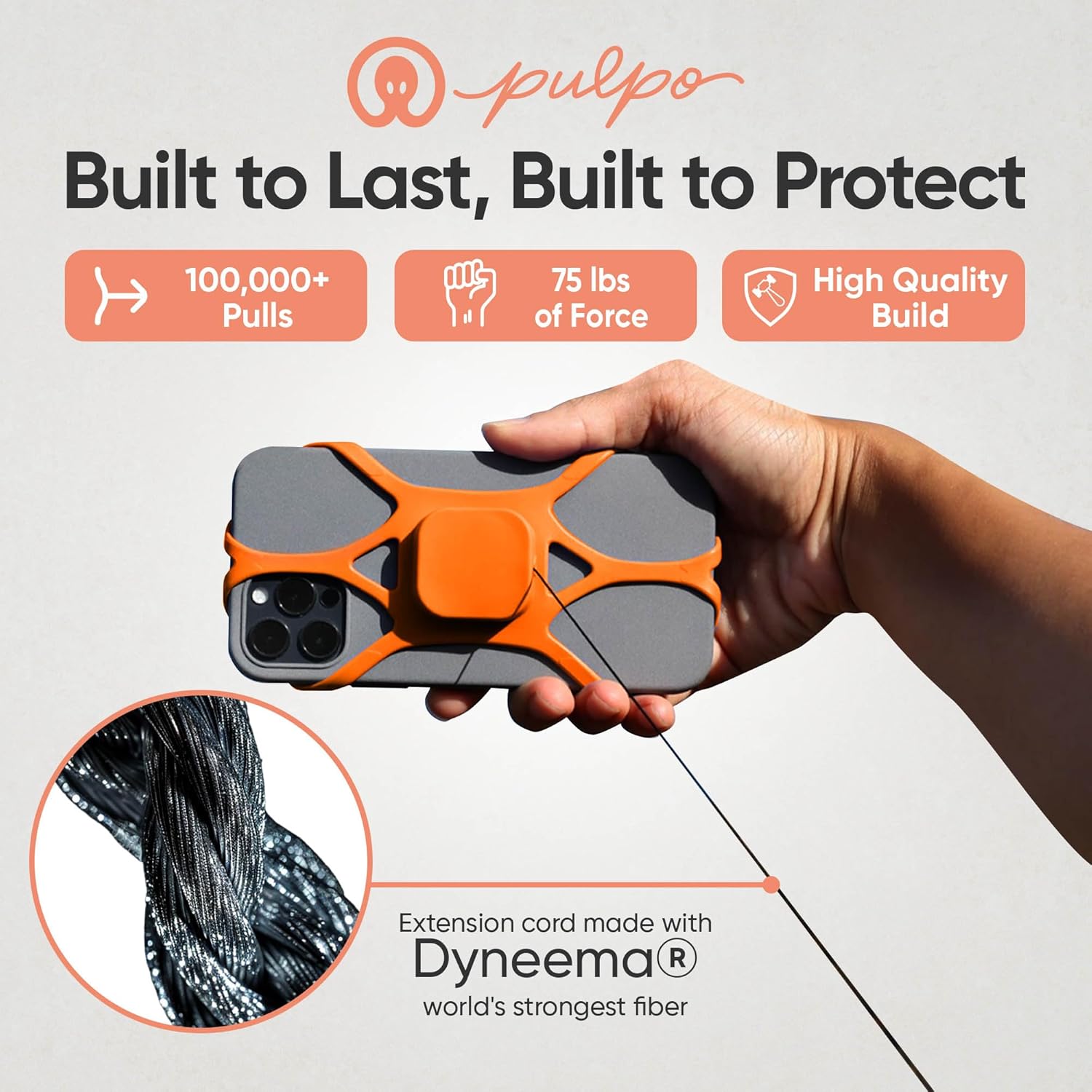 Pulpo Anti Theft Phone Leash with Retractable Dyneema Tether, Secure Phone Leash and Strap for Skiing, Kayak, Travel and Festivals, Fits Smartphones up to 6.8 Inches, Annoying Orange