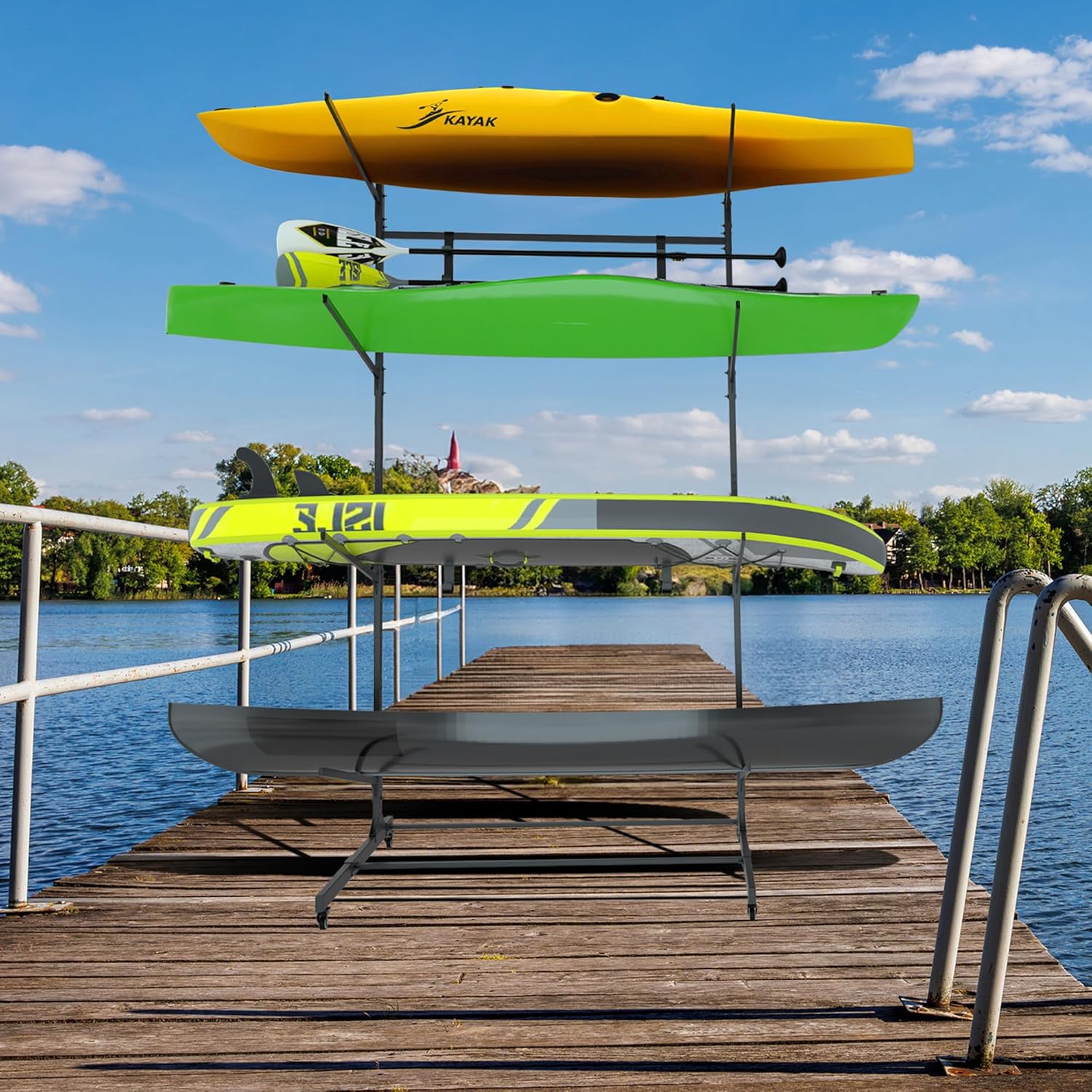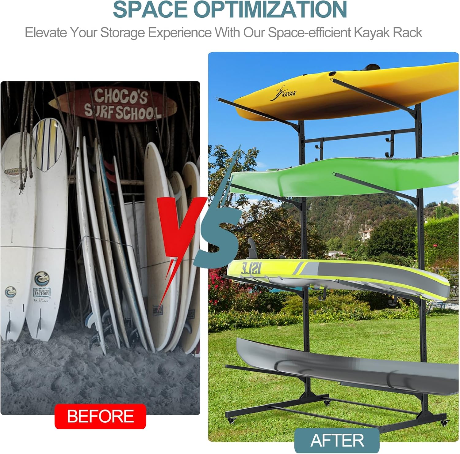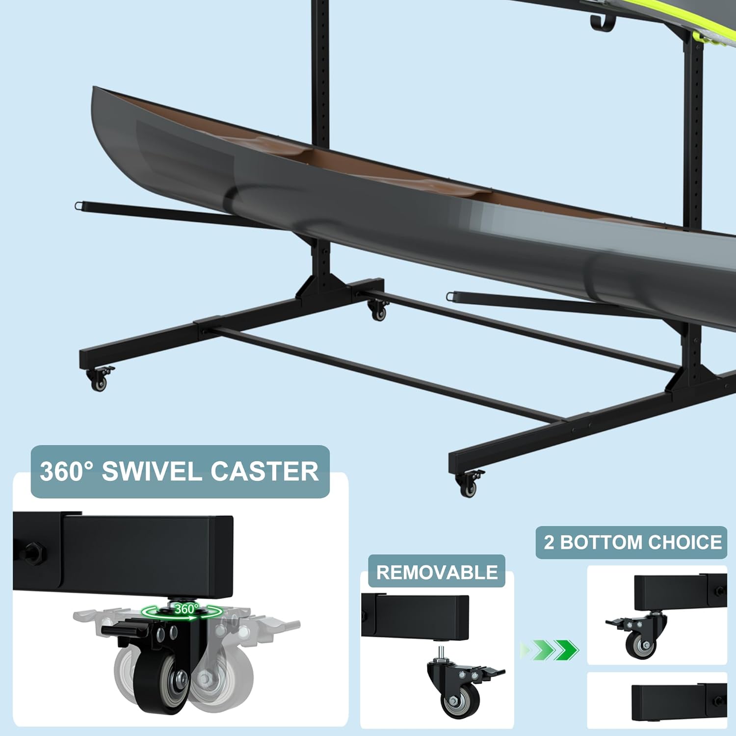 RELIANCER Freestanding Kayak Storage Rack w/Wheel,Adjustable Kayak Stand for Boat Dock,Garage,Indoor & Outdoor Canoe and Kayaks Holder,Water Sport Watercraft Storage Rack for SUP,Surfboard,Paddleboard