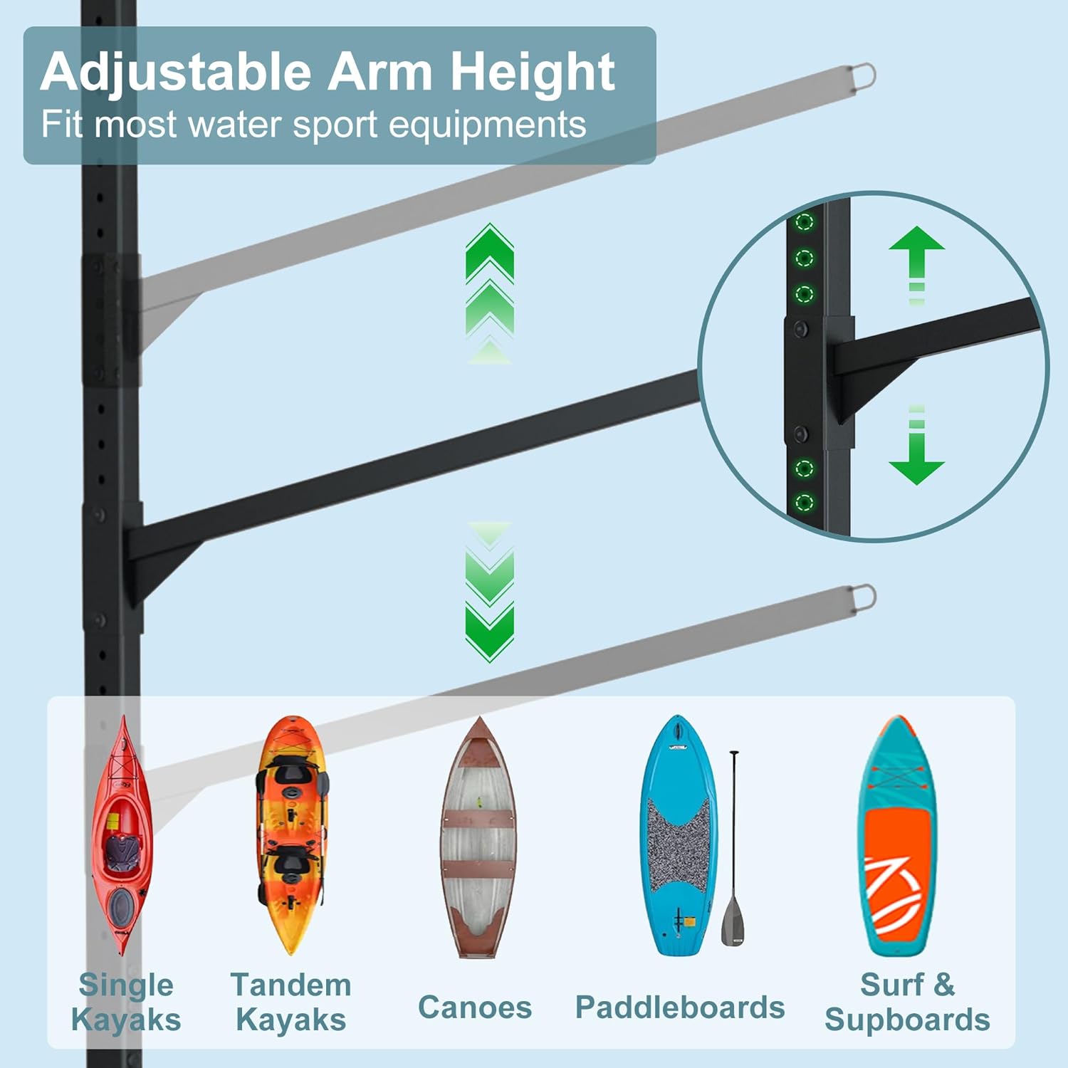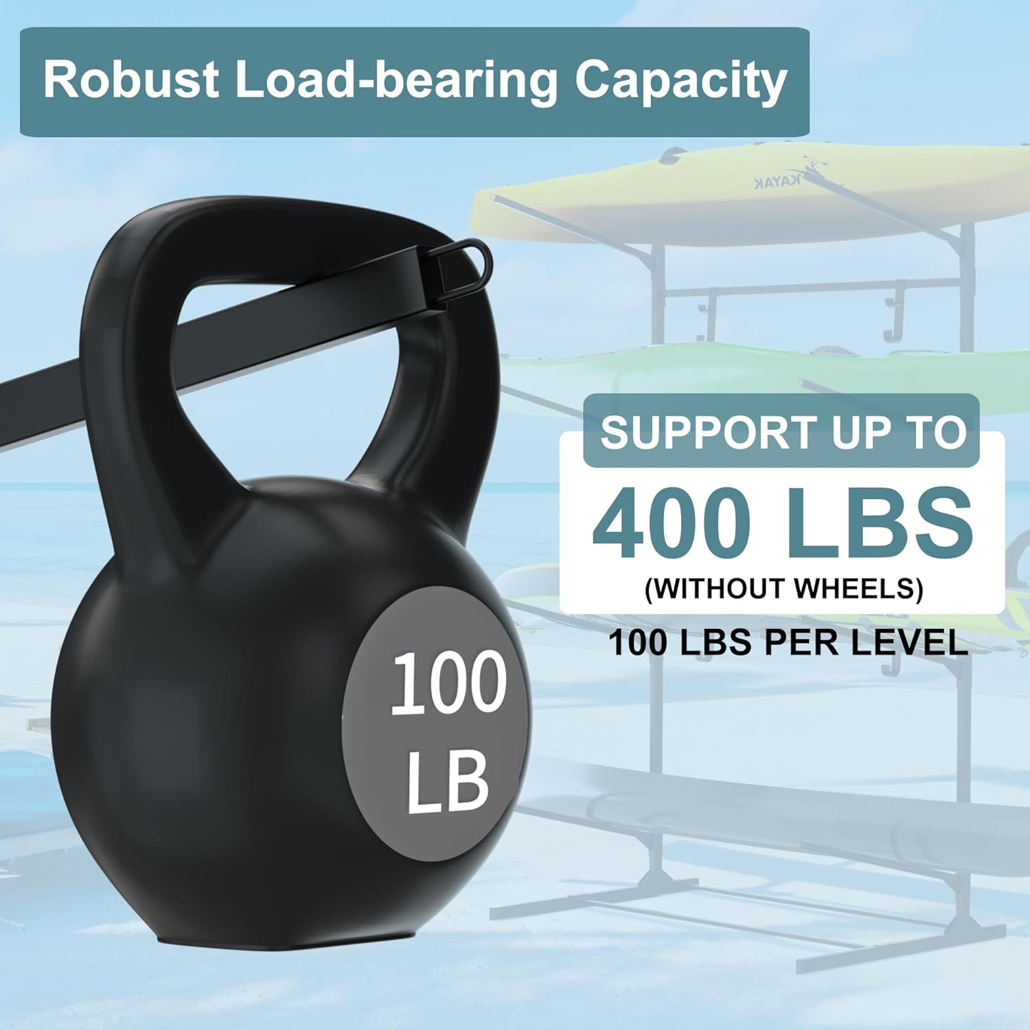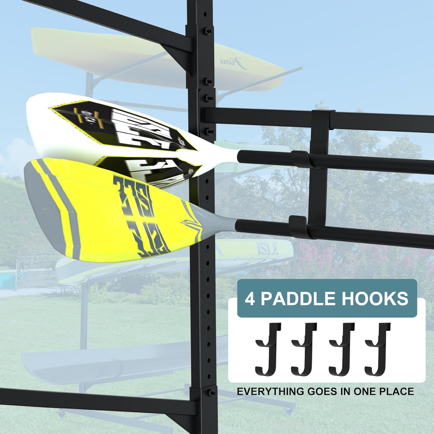 RELIANCER Freestanding Kayak Storage Rack w/Wheel,Adjustable Kayak Stand for Boat Dock,Garage,Indoor & Outdoor Canoe and Kayaks Holder,Water Sport Watercraft Storage Rack for SUP,Surfboard,Paddleboard